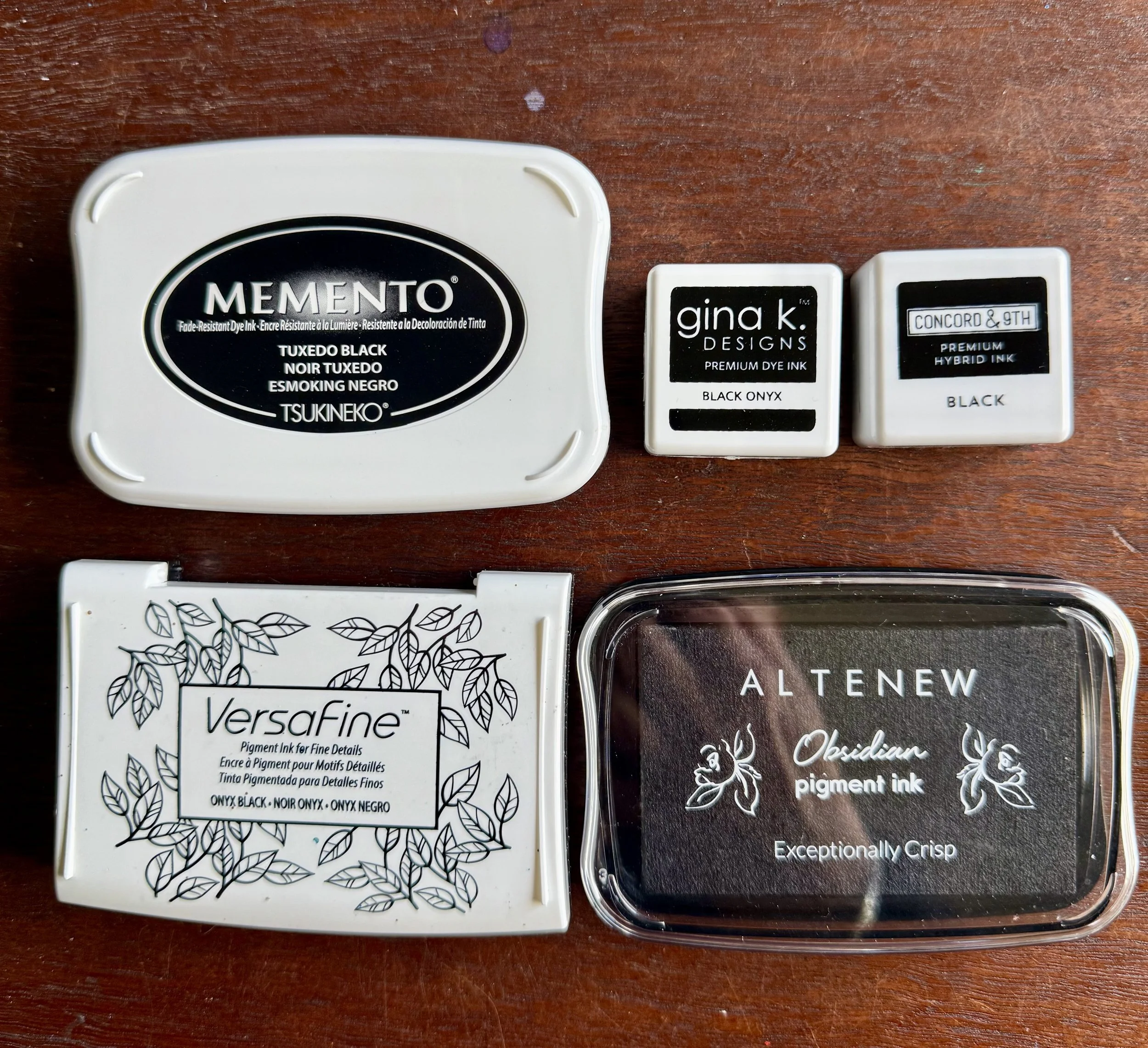 Are black inks all the same? The short answer is ‘no’, they’re not. Before you use black in your cardmaking, you have to decide what you want to do with it, and what other mediums you want to use.