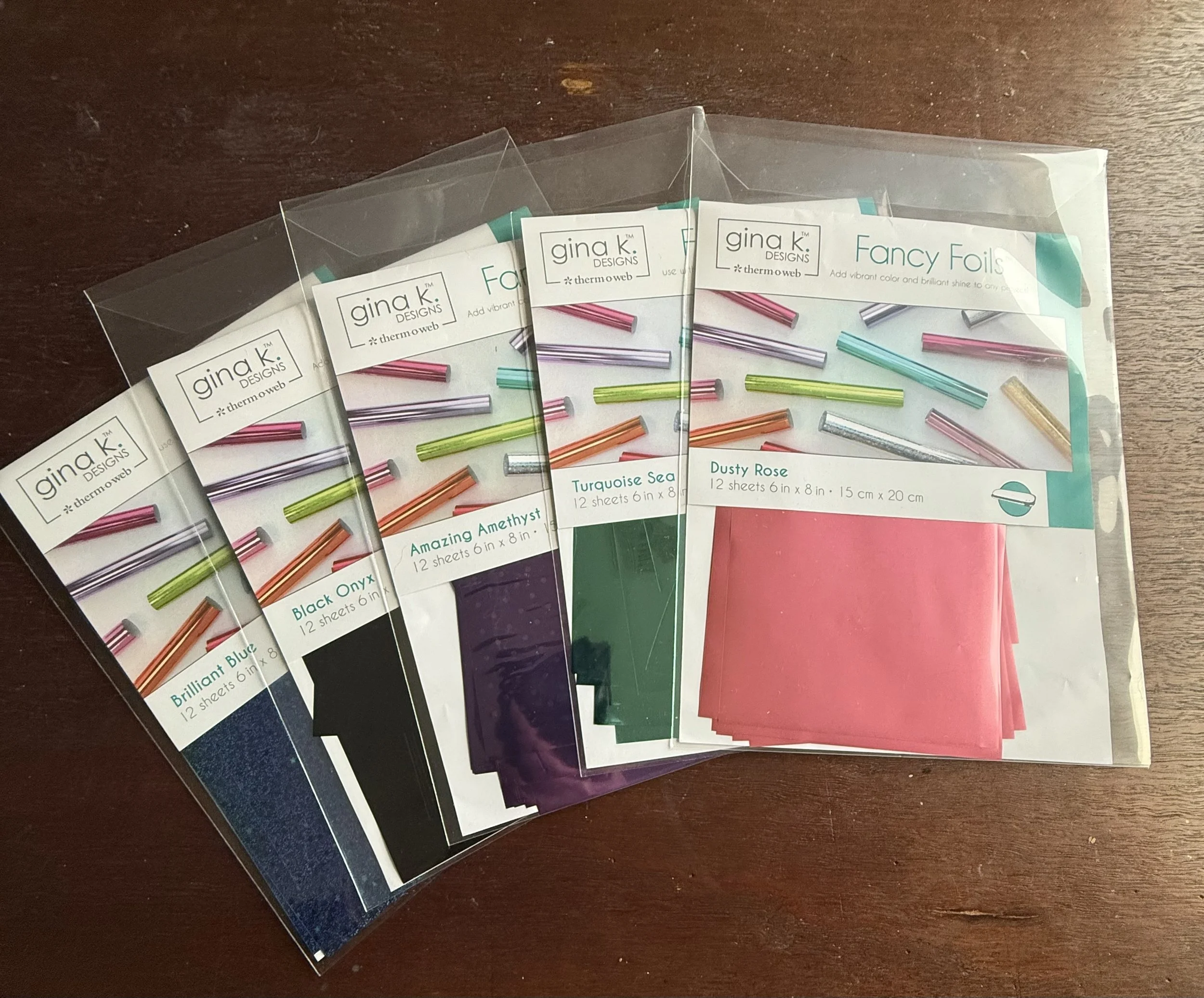 Did I really want to make that investment for something that I wasn’t even sure I would like? Anyway, I bought ‘all the stuff’ and I do really enjoy it. And now that you can use press plates to foil…well…but that’s another story! Anyway, my foiling journey ultimately brought me to another technique for foiling, using the Gina K Designs Fuse Foiling System. (You could also use a MINC machine or a laminator with multiple heat settings.) Now, for me, this is a game-changer as I find it quick and easy and it gives me excellent results.
