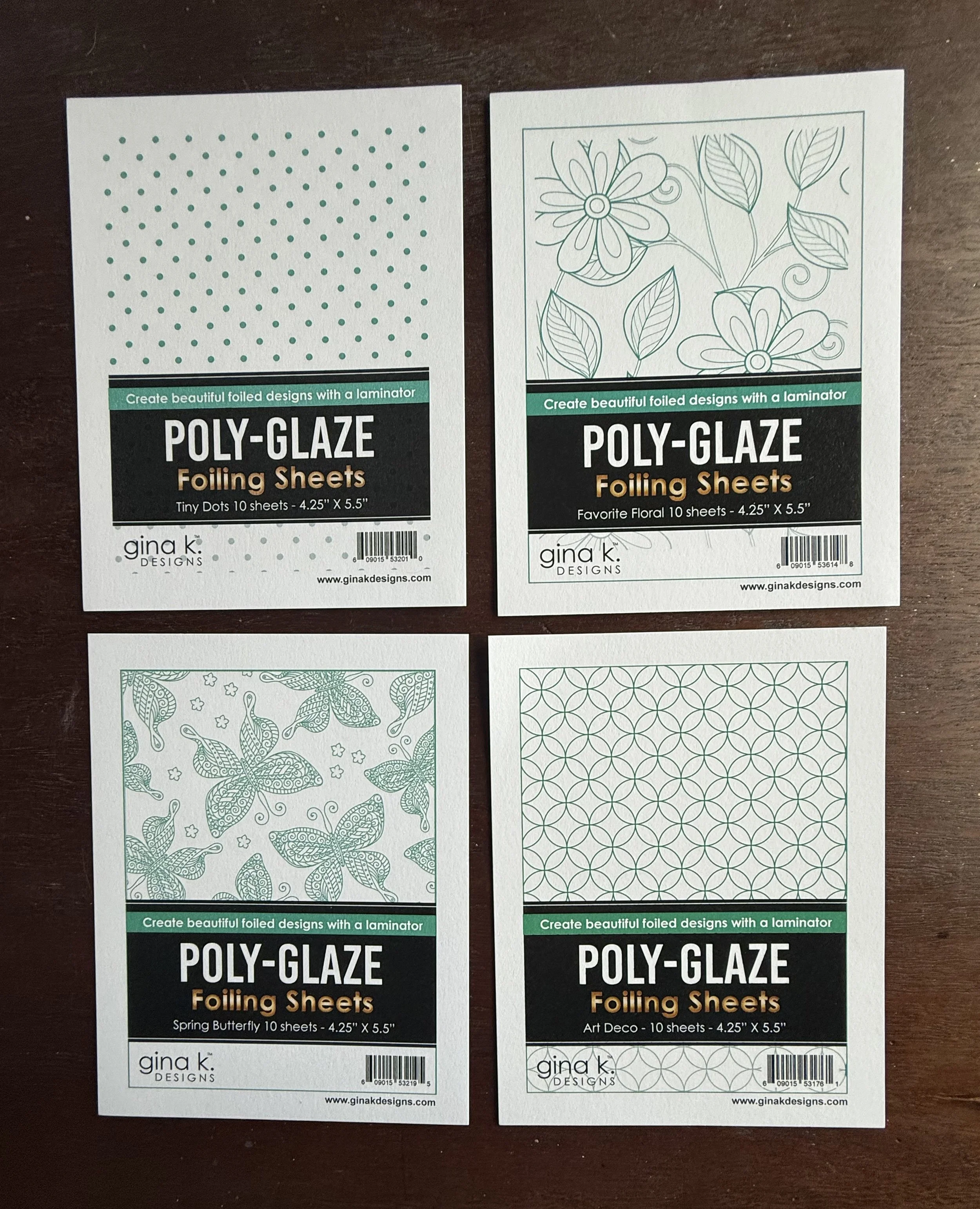 This method of foiling uses toner sheets or Poly-Glaze foiling sheets with foil on top, sandwiched in a carrier sheet and passed through the Fuse machine (kind of like laminating but different). Poly-Glaze foiling sheets are a Gina K Designs product but they are sold through a number of retailers. They are available in different designs including sentiments as well as images. It’s important to note, however, that you cannot use the same type of foil used with the hot foiling method. I use Fancy Foils (also by Gina K Designs) which come in a variety of colours and finishes. Both the Poly-Glaze foiling sheets and the Fancy Foils have an excellent price point so, for me, it’s a more cost-effective method of foiling. The main cost investment of this method is the actual Fuse machine. Again, the foiling results are lovely. It’s worth noting that you can also laminate with the Fuse Foiling system (although I haven’t tried it yet).